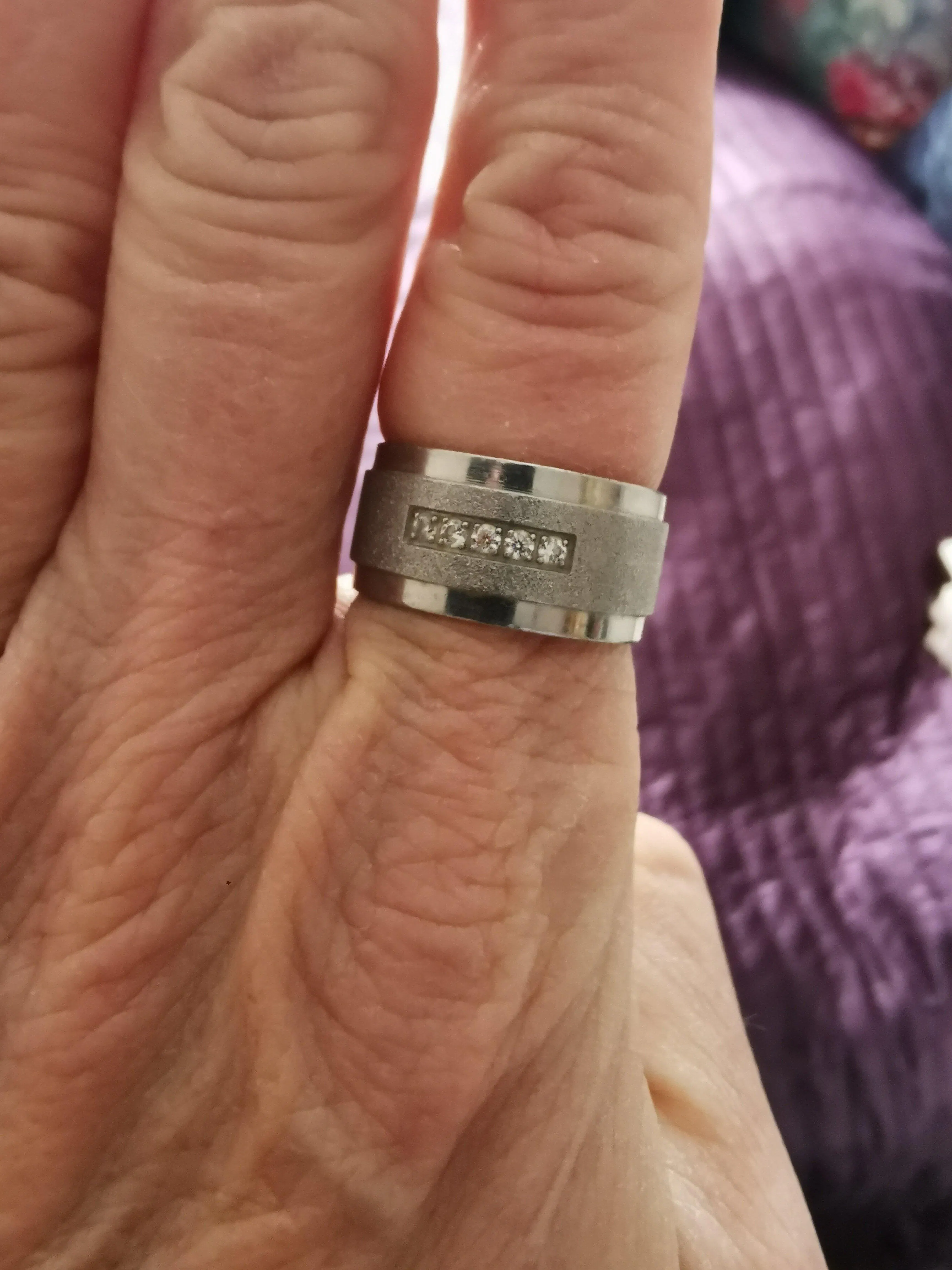 Glittering Mind Gold Ring is an elegant ring made of durable surgical steel, completely free of nickel and cobalt. The 10 mm wide ring has a beautifully sandblasted surface that gives a subtle, sparkling expression. Five sparkling Cubic Zirconia stones in the center catch the light and create an exclusive feel. The inside is softly rounded for a comfortable fit all day long.